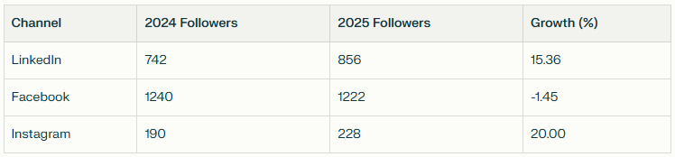 ELTABB’s social media following rose by 6.17% in 2025, resulting in a total amount of 2306 subscribers.